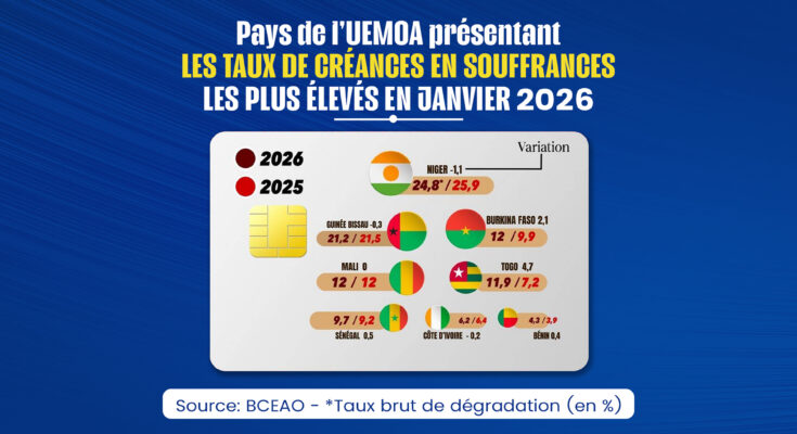 Un record difficile à ignorer : Avec un taux de dégradation brut de 24,8 % en janvier 2026, le Niger surpasse tous les autres États membres. Près d’un quart des crédits accordés dans le pays sont désormais en défaut, un chiffre qui, bien qu’en baisse de 1,1 point par rapport à 2025, reste largement au-dessus de la moyenne régionale.